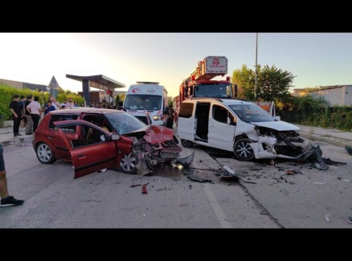 Bursa'nın İnegöl ilçesinde hafif ticari araç ile otomobilin çarpışması sonucu 6 kişi yaralandı. Kaza anı bir sitenin güvenlik kamerasına anbean yansıdı.