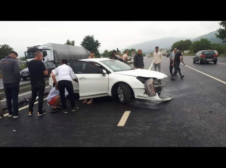 Bursa'nın İnegöl ilçesinde yağış sebebiyle kayganlaşan yolda bariyerlere çarpan otomobildeki 4 kişi yaralandı.