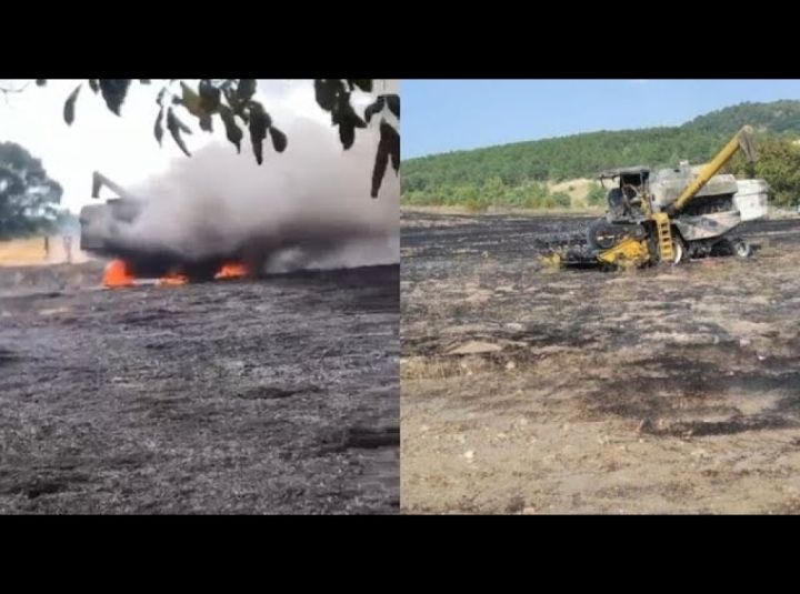 Bursa'da buğday tarlasında çıkan yangında 100 dönüm tarla ve 1 biçerdöver yandı.