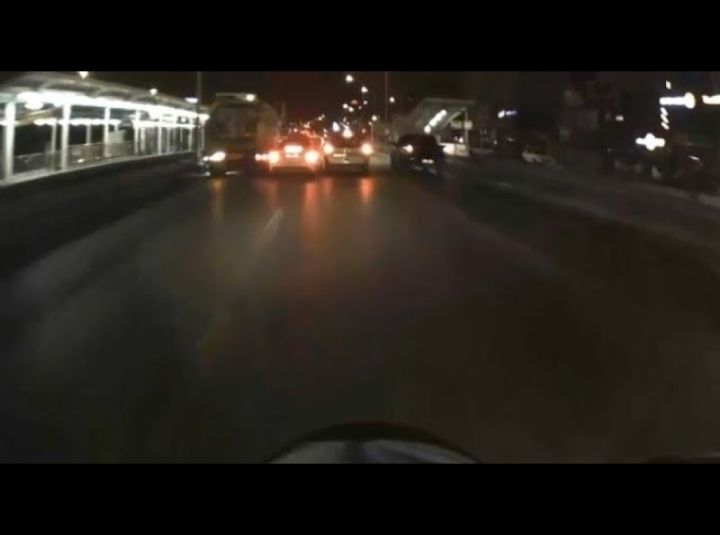 Bursa'da otomobil sürücü anayolda makas atarken sulama tankerine çarpmaktan son anda kurtuldu. O anlar motosiklet sürücüsünün kask kamerasına anbean yansıdı.