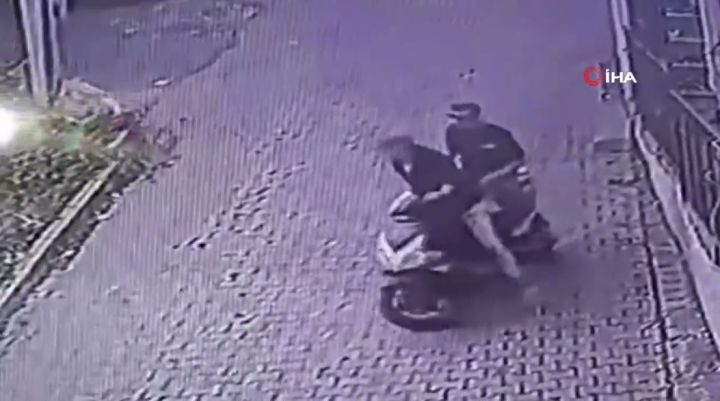 Bursa'da zemin kattaki bir evin balkonunda ipte asılı çamaşırları çalıp motosiklet ile kaçan hırsızlar, kameraya yakalandı.