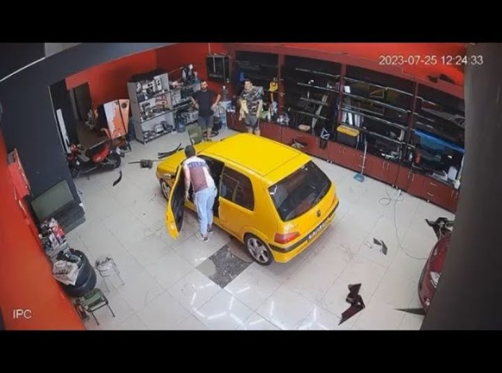 Bursa'da otomobilini bakım için tamirci dükkanına getiren sürücü gaza basınca önce işyeri sahibine, ardından dükkanda bulunan malzemelere çarptı.