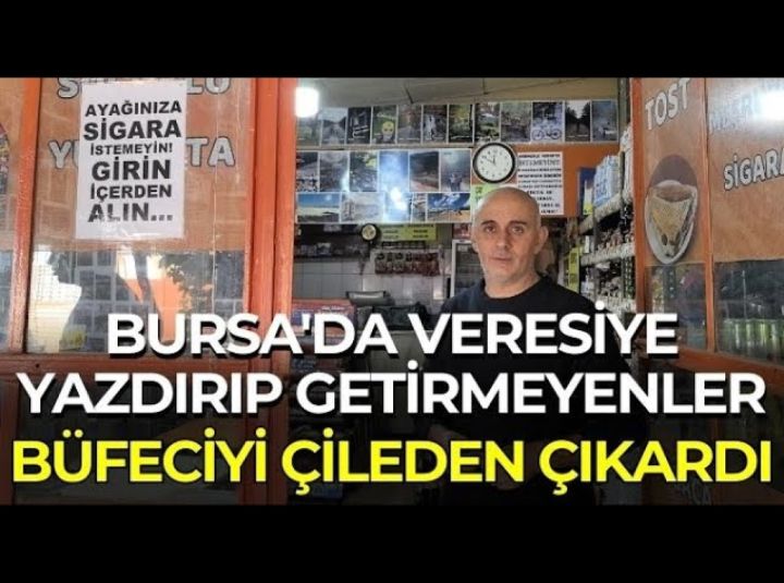 Bursa'nın İnegöl ilçesinde büfe işleten Ömer Cabir, veresiye verip geri gelmemesinden yaka silkti. Buna rağmen veresiye isteyenler bitmeyince çileden çıkan büfeci Cabir, büfeyi uyarı yazılarıyla donattı. Bursa'nın İnegöl ilçesinde büfe işleten Ömer Cabir (50), mesleğinde 15 yıl içerisinde yaşadığı sorunların önüne geçmek için işyerine müşterileri uyaran yazılar astı. Cabir, isyanını işyerine astığı şu uyarılarla dile getirdi; "Ayağınıza sigara istemeyin! Girin içeriden alın. Cumartesi günleri borcunu ödemeyenin hesabı kesilir. Kesinlikle veresiye istemeyin. Birazdan bırakırım, geçerken öderim, cumartesi yanındayım, aybaşı getireceğim, bıktık bu laflardan paran varsa al, yoksa alma." Konuyla ilgili açıklamada da bulunan Ömer Cabir, "15 yıldır büfe işletmecisiyim. Tabi ki doğa sporlarıyla da 35 yıldır uğraşıyorum. 2003 yılında İnegöl doğa sporları kulübü İDOSK adı altında kulüp ve dernek kurduk. 7 adet branşımız var. 35 yıldır gece gündüz demeden şelale orman, dağ cayır geziyoruz. 15 yıldır insanlarla uğraşıyoruz. Adamın biri burada bir çay içiyor ya da samimiyet kuruyor, 'ağabey birazdan bırakırım' diyor ya da 1 sene boyunca her ay ödemesini düzenli yapıyor. Ama sonra 2 hafta ortadan kayboluyor. Ya sokağı terk ediyor ya da işi bırakıyor. Aylardır Whatsapp'dan yazıyorsun dönüş yapmıyor, aylardır telefonla arıyorsun cevap vermiyor. Ama burada kendi oturduğunda birisi bir ödeme yapmadığında kendine küfür üzerine küfür ediyor, kendine gelince yok bir şey. Adama diyorsun borç sigara isteme diye adam diyor bana geçerli değil. Sana geçerli tabii kime geçerli olacak başka. Bir yabancı bile istemez bunu, yıllardır yazıyorsun işte ama insanlar hep uğraştırıyor işte. Birazdan bırakırım diyorlar hiç zamanında bırakıldığını göremedik. Geçerken diyorlar hiç geçtiklerini de göremedik. Cumartesi yanındayım diyor, cumartesi zaten sanayiyi terk ediyor" dedi. Yalanın ardın arkasının kesilmediğini belirten Cabir, "Aybaşı tamam abi garanti her şeye tamam yani daha önce yaşadığımız bir çok olay var. Adamın biri gece arıyor abi neredesin büfeye gelmiştim borcumu getirmeye tamam diyorum kapının altından parayı gönder diyorum, Sabah 6'da geliyorum kapıyı açıyorum para yok. Arıyorsun adamı usta parayı atmamışsın acil Bursa'ya çıkmam gerekiyordu diyor. Mübarek diyorsun saatler mi sürüyor kapının altından para atmak gözünün içine baka baka yalan sallıyor. Bu yazılar yeni gelen insanlara mesela gelecek sigara içecek bir bakacak borç sigara isteme yazısını görecek. Sıradaki yazıyı gören yeni geldiyse, yeni taşındıysa o yazıyı gördüğünde bir şey istemeye cesaret edemiyor. Bu adam bunu yazmış bana vermez diyor yani gerçekten caydırıcı oluyor. Hiç öyle ince hesap yapmadım ondan ziyade fahiş bir zararım olmasa da. Verilen sözlerin tutulmaması asıl insan ona sinirleniyor. Borcun benim gözümde miktarı yoktur. Bir lirada olsa getir ver kardeşim 100 TL'de olsa getir ver. Ağabey diyor ne var ki kaç para? Ya beni ilgilendirmez ben burada aldığım her malı sigara, bisküvi, poğaça hepsini peşin alıyorum. Sen niye kıyaslama yapıyorsun ki bir lirada olsa borçtur yüz lirada olsa borçtur. Borcunu ödeyeceksin bu kadar basit. Ama işte adam hala haklı çıkmaya çalışıyor hep aynı senaryolar" diye dert yandı.