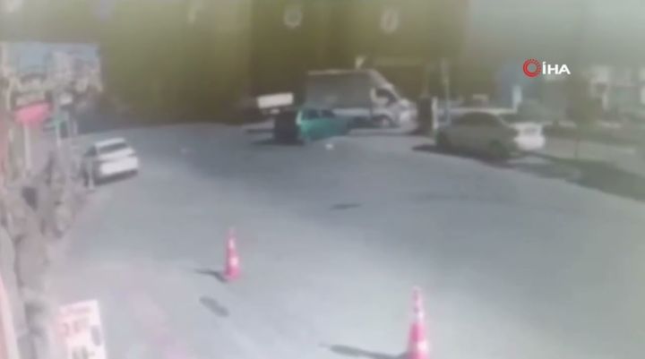 Bursa'da otomobil yolu ortalamayınca karşıdan gelen otomobille kafa kafaya çarpıştı. Kaza anı güvenlik kamerasına anbean yansıdı.