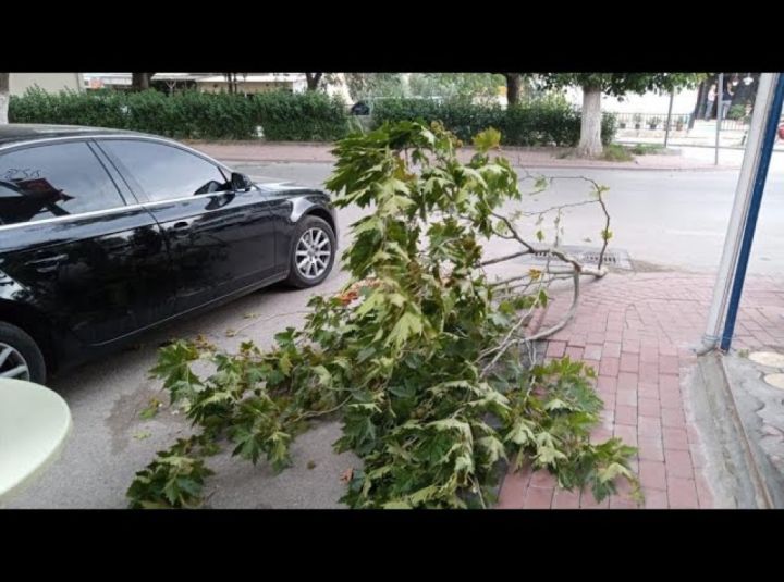 Bursa'nın İznik ilçesinde fırtınadan dolayı kopan dev bir ağaç dalı, araç kapısını açan küçük çocuğu teğet geçti. O anlar güvenlik kamerasına yansıdı.