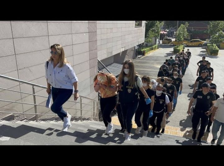 7 ilde gerçekleştirilen fuhuş operasyonunda yakalanan 2'si kadın 14 kişi, emniyetteki işlemlerinin ardından adliyeye sevk edildi.