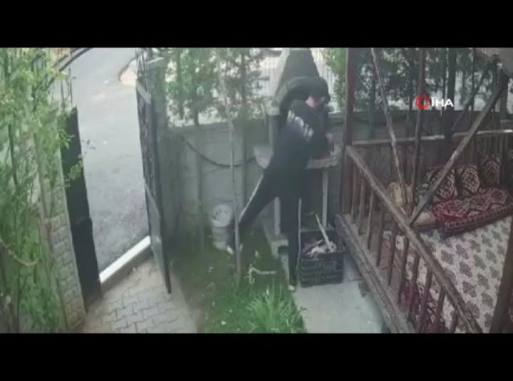 Bursa'da semaver ve kablo çalan şahıs evin kamerasına anbean yansıdı.