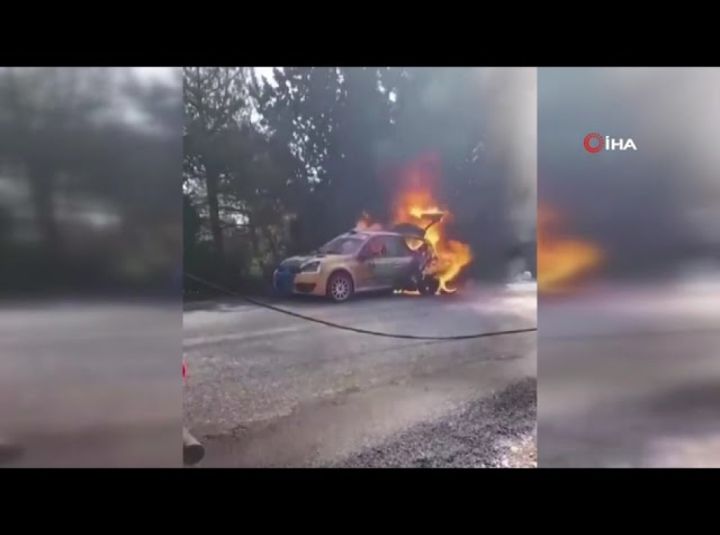 Bursa'nın Gemlik ilçesinde düzenlenen Türkiye Tırmanma Şampiyonası'nda bir otomobil alev alev yandı.