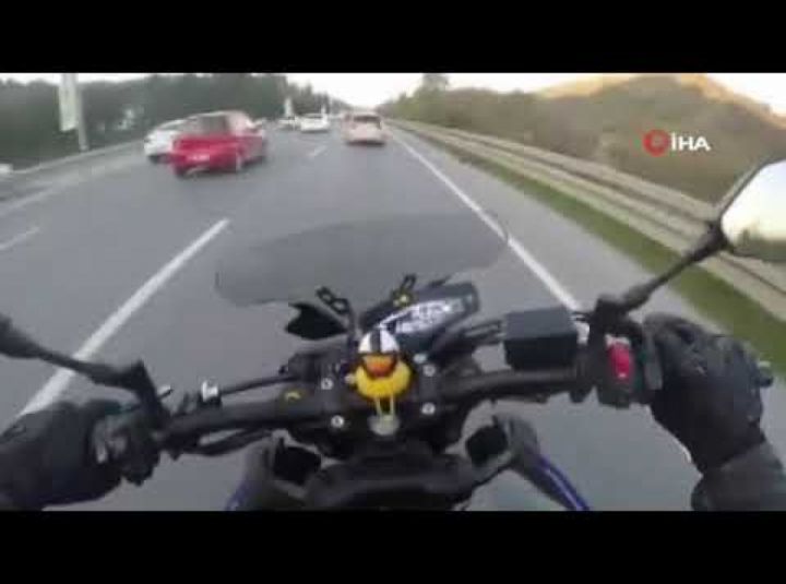 Bursa'da trafikte makas atarak ilerleyen otomobil, bir motosikletlinin kask kamerasına yansıdı.