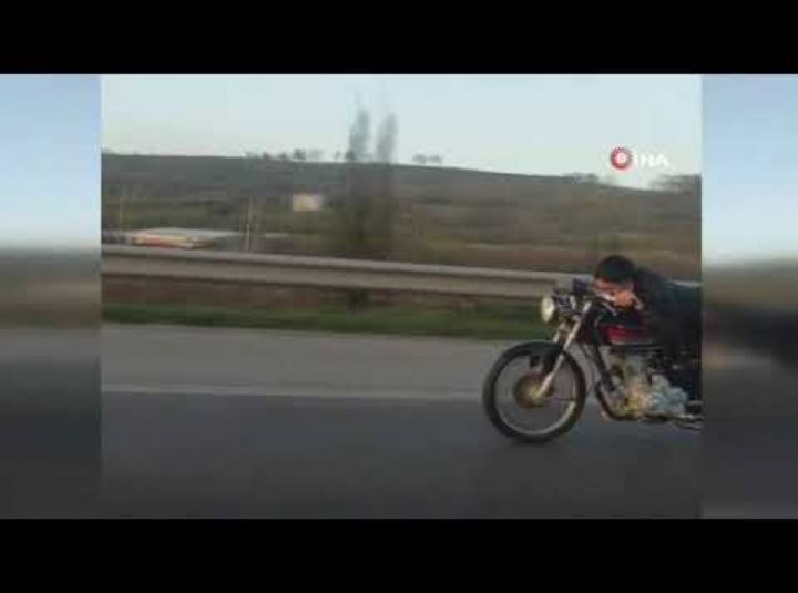 Bursa'da, motosiklet üzerindeki sürücünün tehlikeli yolculuğu görenleri şaşırttı.