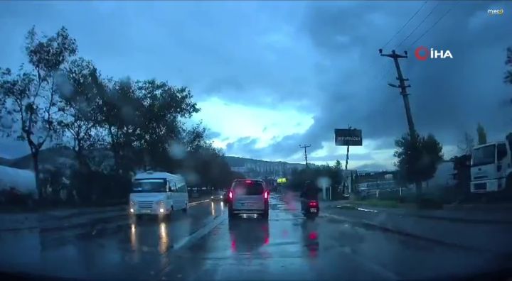 Bursa'nın Orhangazi ilçesinde sabah saatlerinde meydana gelen trafik kazasında iki kişi yaralandı. Olay, saat 08.00 sıralarında Göl Yolu Caddesi üzerinde gerçekleşti. Edinilen bilgiye göre, bölgede bulunan bir fabrikadaki mesaisini tamamladıktan sonra yola çıkan Furkan V. (24) yönetimindeki 16 BDD 560 plakalı motosiklet, trafikte yoğunluk oluşması üzerine araçların arasından ilerlemeye başladı ve emniyet şeridini kullandı. Bu sırada karşı yönden gelen ve yol üzerindeki bir iş yerine dönüş yapmak üzere manevra yapan Vahdettin A. (40) idaresindeki 16 BRP 445 plakalı otomobile çarpan motosiklet kontrolden çıktı. Çarpmanın etkisiyle motosiklet sürücüsü Furkan V. ile yolcu konumundaki Ömer E. (22) yaklaşık 30 metre savrularak kaldırıma düştü. Çevredeki vatandaşların ihbarı üzerine olay yerine sağlık ve polis ekipleri sevk edildi. İlk müdahaleleri kaza yerinde yapılan iki yaralı ambulanslarla Orhangazi Devlet Hastanesi'ne kaldırıldı. Tedavi altına alınan yaralıların bacaklarında kırıklar bulunduğu öğrenildi. Polis ekipleri kazayla ilgili soruşturma başlatırken, kaza anına ait güvenlik kamerası görüntüleri de ortaya çıktı. Görüntülerde motosikletin otomobile çarpması ve iki gencin metrelerce savrulması net şekilde görülüyor.