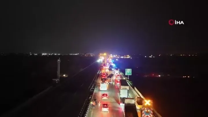 Sakarya'da Anadolu Otoyolu'nun Ankara istikametinde meydana gelen zincirleme trafik kazası, adeta can pazarına döndü. Erenler mevkii Alancuma bölgesinde yaşanan kazada 16 araç birbirine girdi, 13 kişi yaralandı. Yaralılardan 4'ünün durumunun ağır olduğu öğrenildi.İddiaya göre köprü altında yakılan lastiklerden yükselen yoğun siyah duman, kısa sürede otoyol üzerine yayıldı. Görüş mesafesinin aniden düşmesiyle birlikte sürücüler önlerini görmekte zorlandı. Bu sırada bazı araçlar ani fren yaparken, arkadan gelen araçların duramaması sonucu peş peşe kazalar meydana geldi.Zincirleme kazaya yolcu otobüsleri, minibüsler ve otomobillerin de aralarında bulunduğu çok sayıda araç karıştı. Kaza sonrası otoyolda uzun araç kuyrukları oluşurken, olay yerine çok sayıda sağlık, itfaiye ve jandarma ekibi sevk edildi.Yaralanan 13 kişi, sağlık ekiplerinin olay yerindeki ilk müdahalesinin ardından çevredeki hastanelere kaldırıldı. Ekipler bölgede güvenlik önlemleri alırken, trafik bir süre kontrollü şekilde sağlandı.Kazanın yaşandığı alan havadan da görüntülendi. Araçların kaldırılması ve yolun temizlenmesinin ardından ulaşım normale dönerken, olayla ilgili inceleme başlatıldı.