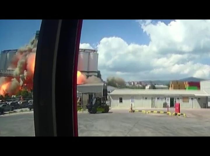 Kocaeli'nin Derince ilçesinde TMO silosundaki patlama anı, güvenlik kamerasına yansıdı.