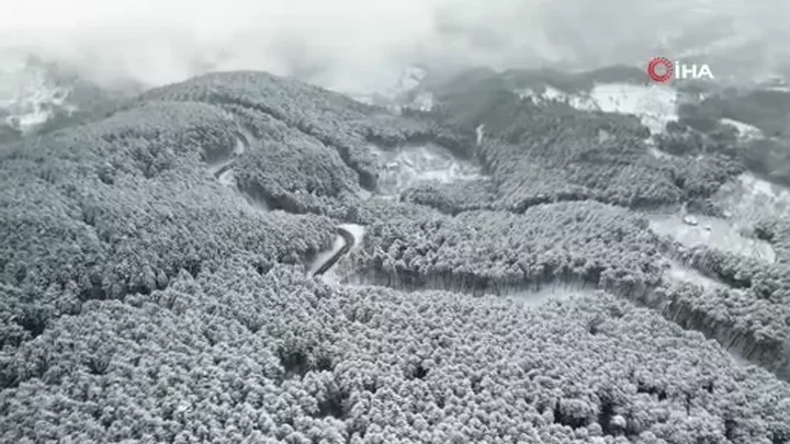 Bursa'da, Uludağ'ın virajlı yolları dron ile havadan görüntülendi.